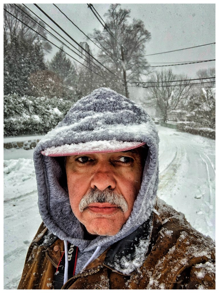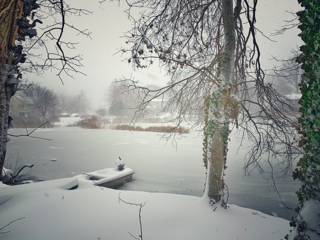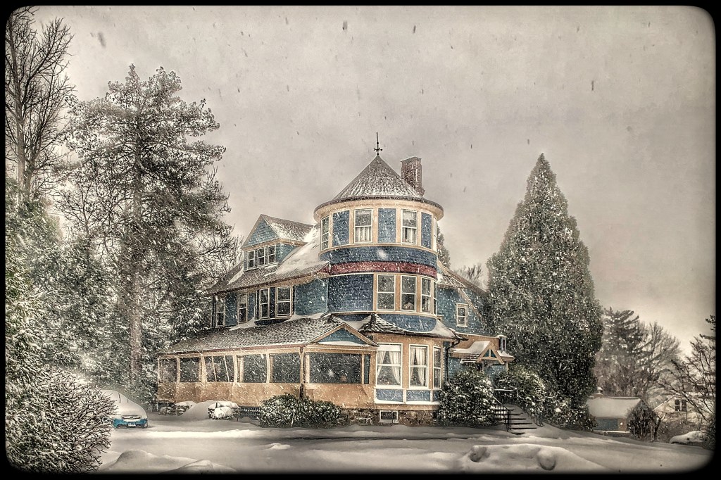 Around 3PM, snow still falling heavily, wind gusting to 30 miles per-hour, I got cabin fever, bundled myself up, and went out for a walk – initially just around the property, eventually about six miles around town. Of course, I had my camera and phone for pictures.