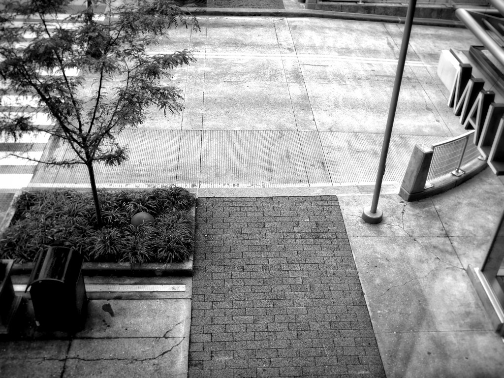 … but, going back back outside through an entrance I rarely use, the area looked slightly different than I remembered. I thought I’d try doing one of the ten exercises I started writing about a year or more ago. I would stand in the same spot, moving my feet only to turn a bit, and take a series of pictures.