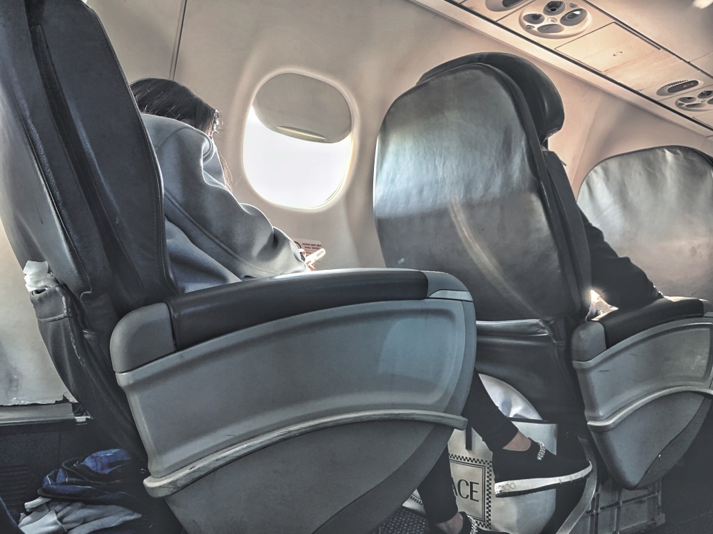 Especially with a full flight, it’s nice to have the extra room for legs and elbows between the seats. (Bonus: fig bars and a seltzer served in an actual glass. Coming up in coach we were offered nothing and told we couldn’t bring beverages on board)