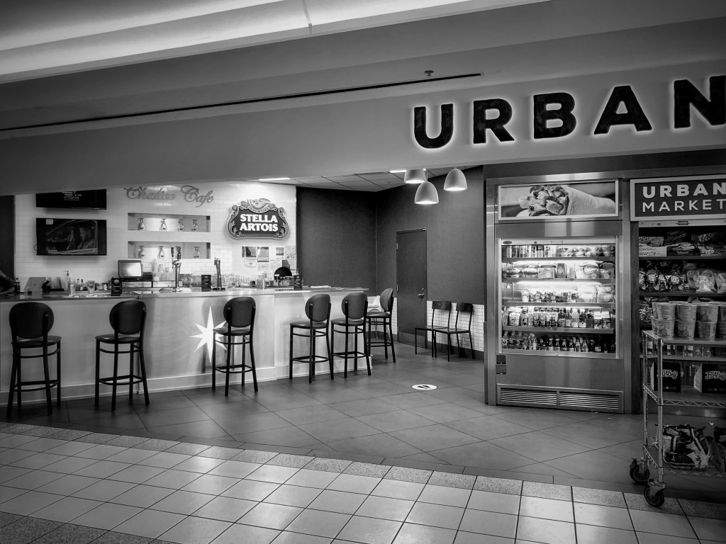 Terrible breakfast at the airport at somethings called ‘Urban Market’ consisting of a container of chocolate milk, a lemon loaf (what nobody seems to call a lemon pound cache anymore), and a bottle of Perrier. Could have gone to the Starbucks all the way in the other side of the A Gates, actually did go, but the line there was almost as bad as the non-MPC line at border control