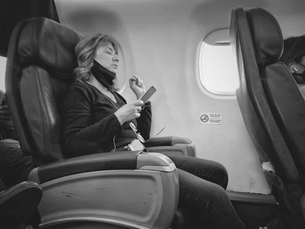 The woman in 4A was leaning across the aisle and saying something to me. I couldn’t understand her, her voice was muffled. I leaned closer to hear her and the sound of my book falling woke me up. When I looked across the aisle the woman, a very different woman than the one in my dream, was sitting back in her seat reading. The muffled in my dream was that of the pilot, who was still talking, announcing our descent into turbulent skies above New York. I picked up my book and, packing it into my backpack, started to feel the initial jolts which lasted about fifteen minutes until we reached the ground. The woman in 4A took pictures documenting our approach.